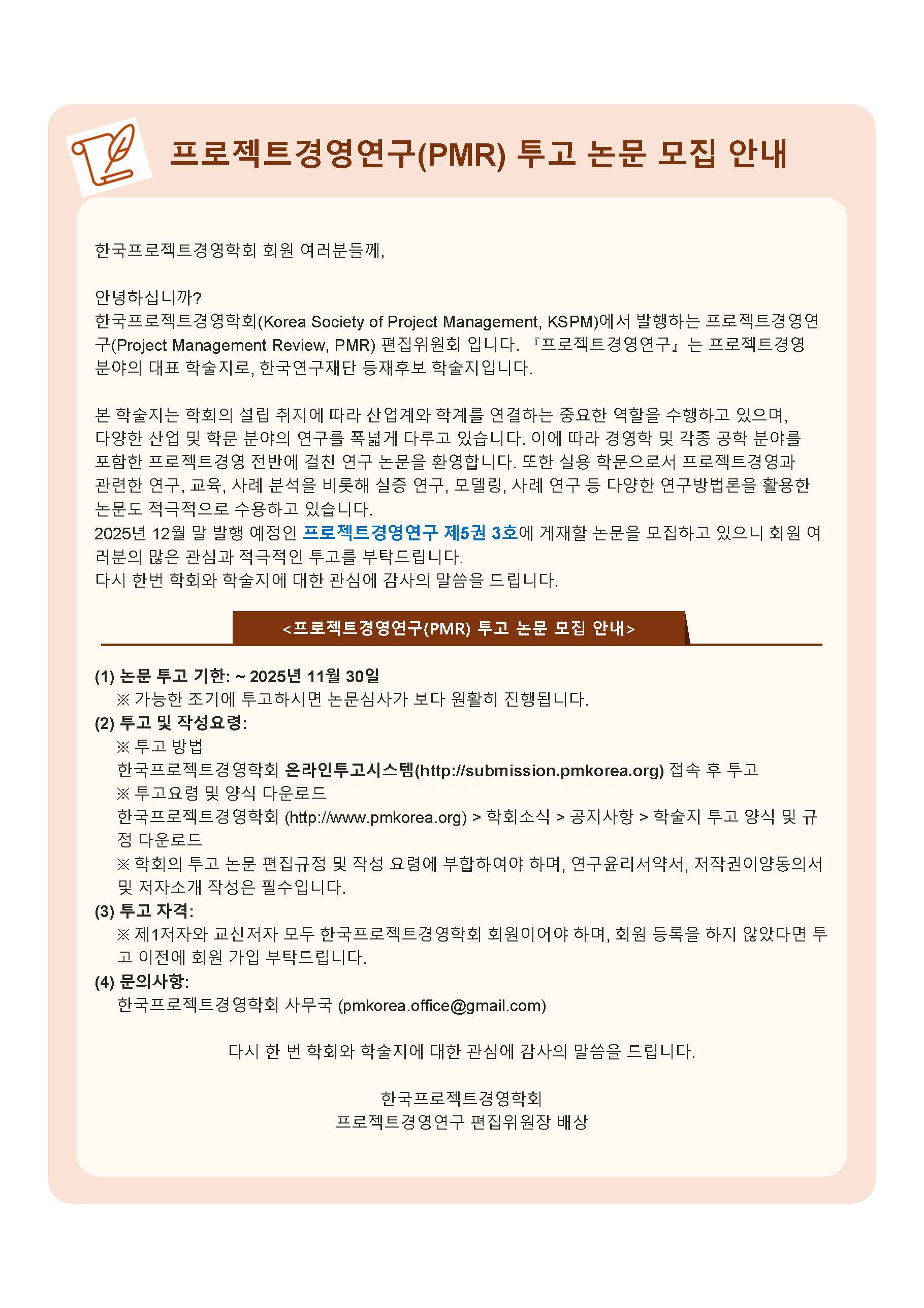 | 프로젝트경영연구 5권 3호 논문 모집 | |